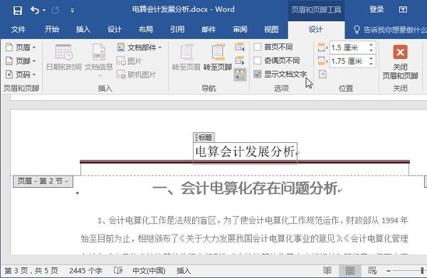 5.解决编辑页眉页脚时文档正文自动消失的问题。