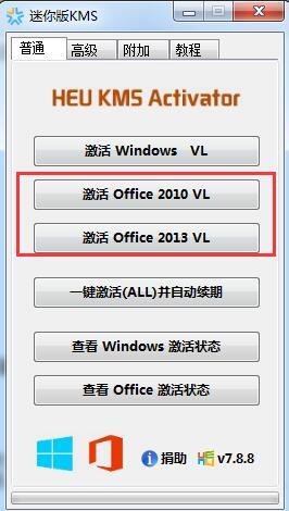 2.该工具支持的激活版本有Windows7专业版/企业版和Windows8专业版/企业版;Office 2010/2013 VOL版;