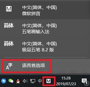 1.点按右下角的输入法来选择语言偏好设置。