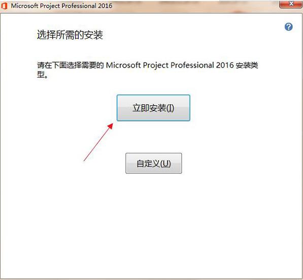 3.进入Pject 2016软件安装位置选择界面,可以选择默认安装。直接在界面点击立即安装,软件默认安装在系统c盘。或者您可以单击自定义安装,单击浏览选择适当的安装位置,然后单击安装。