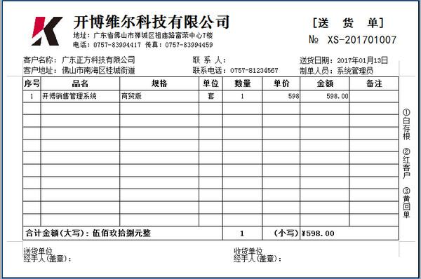 正式版没有任何功能限制,终身免费升级。开博送货单打印免费版软件提供远程技术支持服务,购买一次即可永久使用。
