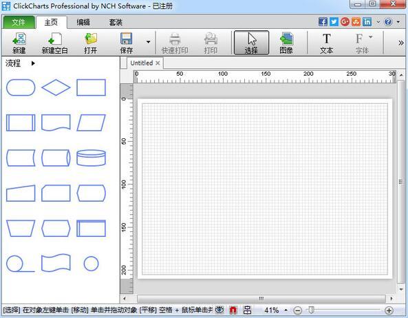 通过所见即所得的绘制,借助软件左侧的各种常规形状工具和连接符,可以在短时间内做出专业的流程图。除了绘图,还可以添加文本和图像。