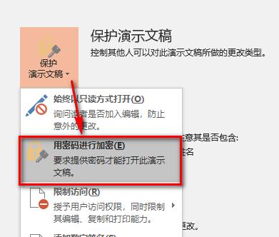 单击,然后单击“保护演示文稿”。