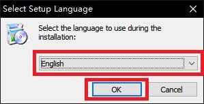 1.双击下载的安装包,进入安装方向。第一步是语言选择。默认选择英文(安装后软件界面为中文),点击确定。