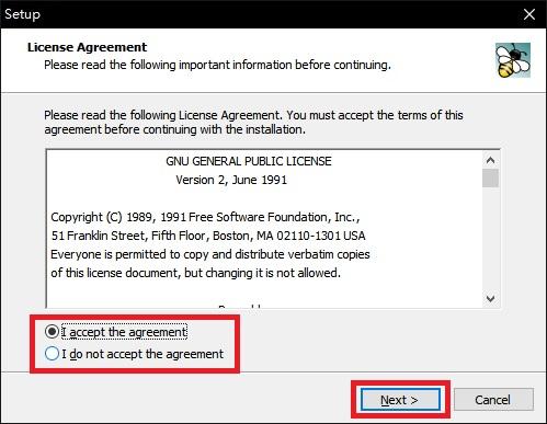 2.进入用户协议界面,选择【我接受协议】,点击【下一步】进入下一步。