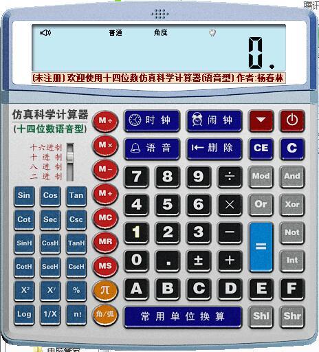 语音计算器下载后按中文语音提示,使用键盘鼠标即可。做的方式和现实生活中常用的计算器一模一样,所以非常好用,特别是对于经常使用小键盘输入数字的用户。省去了一边看电脑屏幕一边看计算器的尴尬。显示屏上的数字可以随时转换成以下形式进行计算:十六进制、十进制、八进制、二进制、货币的中文大写形式、货币数字形式(例如:1435.75、人民币1435.75、人民币1435.75)。以上转换计算结果可以自动保存到WINDOWS剪贴板也可以不保存,可以自动输出到其他程序窗口的当前光标位置,不用按& # 8221;ctrl+V & # 8221;方便用户使用。还可以随时抓取其他程序窗口中选中的公式或数据参与计算。如果你认为计算器覆盖了屏幕上显示的内容,用鼠标点击LCD屏幕,变为小窗口模式,小窗口可以随意拖拽,可以自动吸附在屏幕边缘,再次点击鼠标恢复原状,非常方便。计算器可以进行各种科学逻辑运算、公式运算、个人所得税计算、各种单位换算、添加各种常用常数表、添加角度和弧度计算。功能非常强大,是工程建设、科学计算、财务管理等应用的得力助手!对程序设计和游戏修改也有很好的作用!