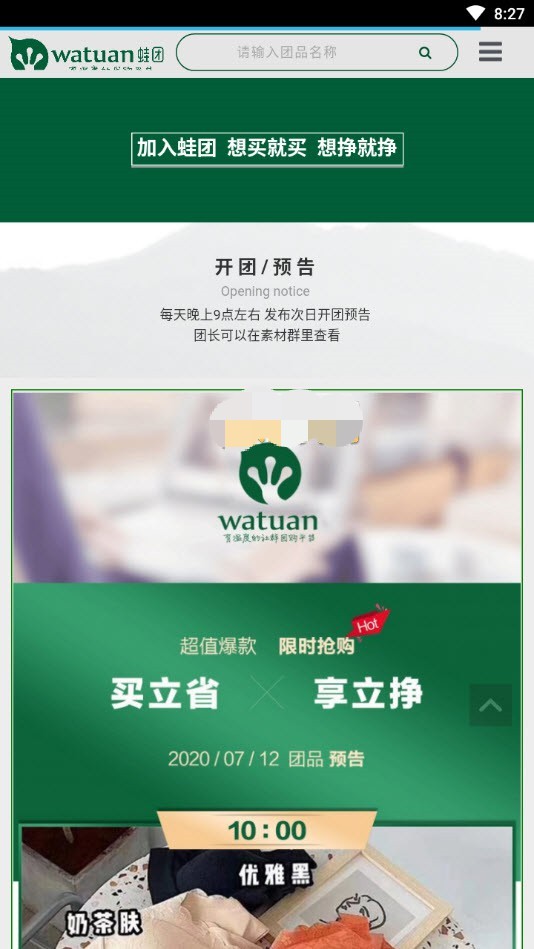 3、蛙团小蛙平台涵盖各种美妆护肤产品,每日不同折扣,不同品类,不同优惠,姑娘们可以随时随地查看购买;