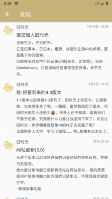 旧时光v4.2.2版是一款专门为用户打造的手机日记软件,当你看到从前的一些老相片时,还能回忆起当年的往事吗,每天的生活都是不一样的,我们不可能还能记得从前的每一个瞬间,可是在这翻开记事本,看到某张我们上传的照片,听到某段自己录入的录音,阅读到我们从前书写的心情,总会有一种说不尽的情,让我们来97在线下载旧时光软件一同记载属于我们的故事吧。
