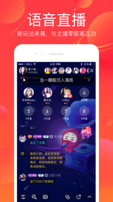 4、实时直播:随时随地分享身边趣事,想红? 最流畅的直播画面,开机直播就能赚票票哦。