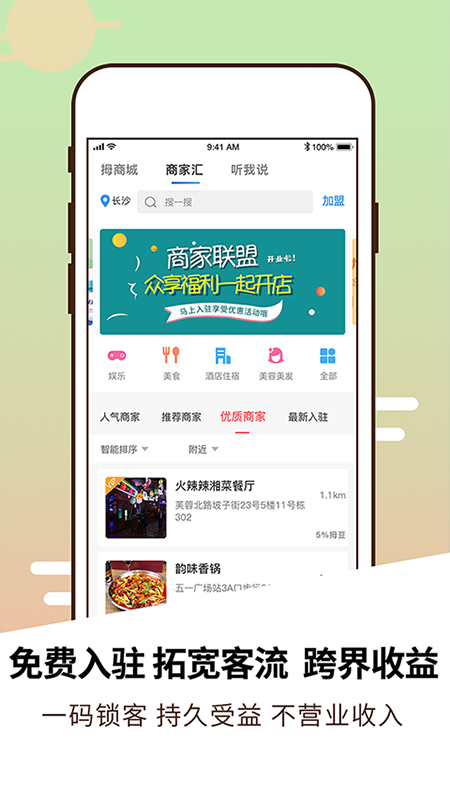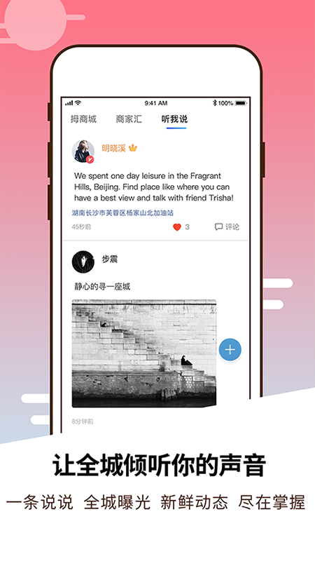 2、可以用户在线与好友聊天,并可开启私密功能发送消息;而且系统会根据定位变化自动更新并推荐附近店铺